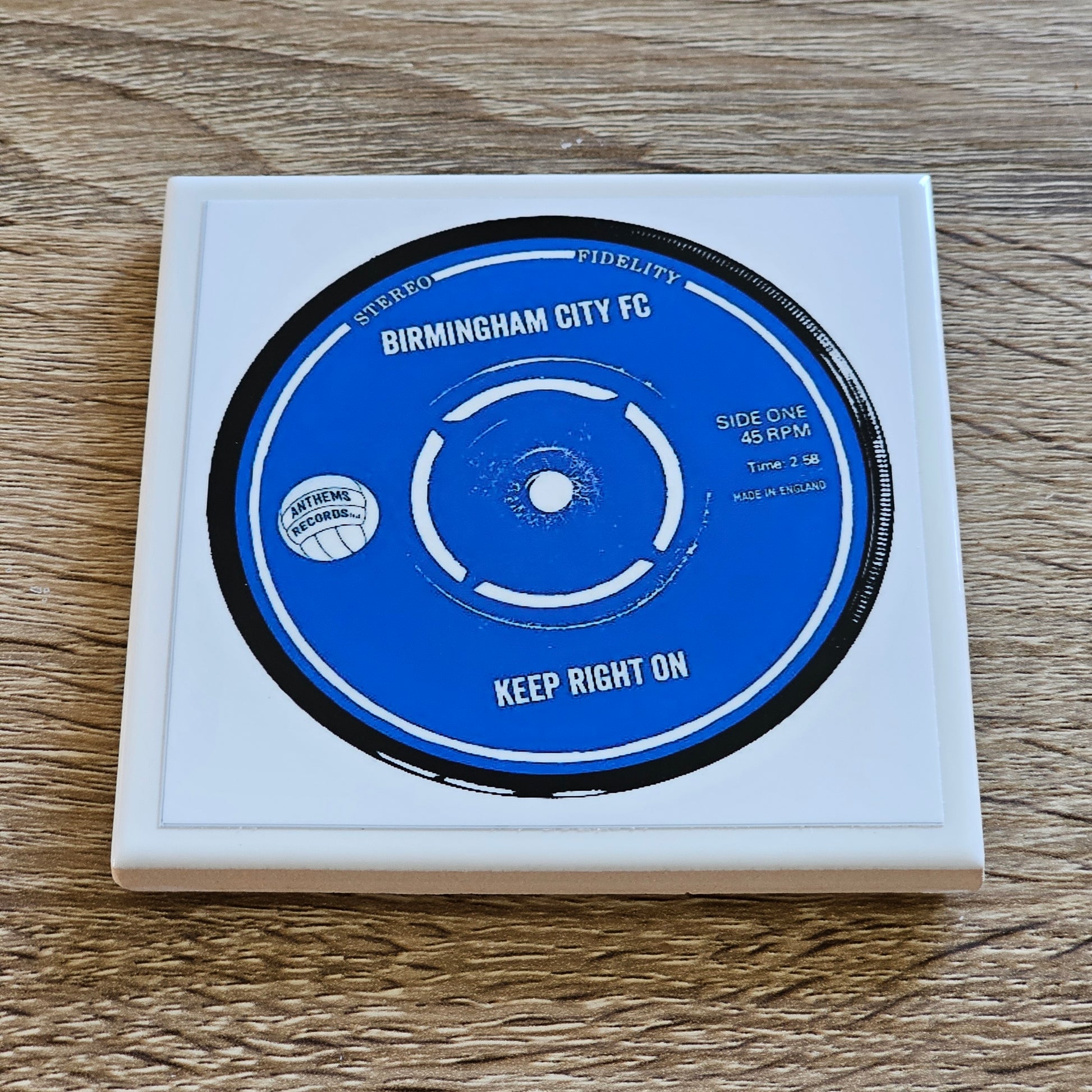 Ceramic drinks coaster measuring 4" (10cm) square with cork backing.