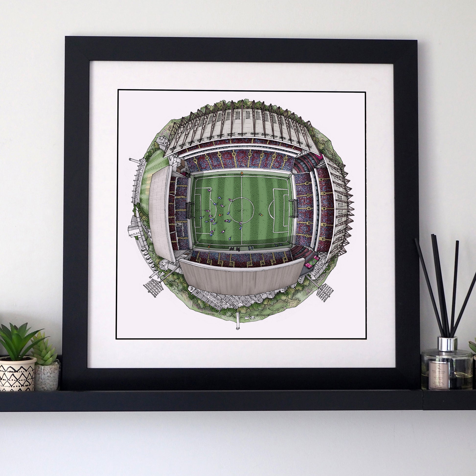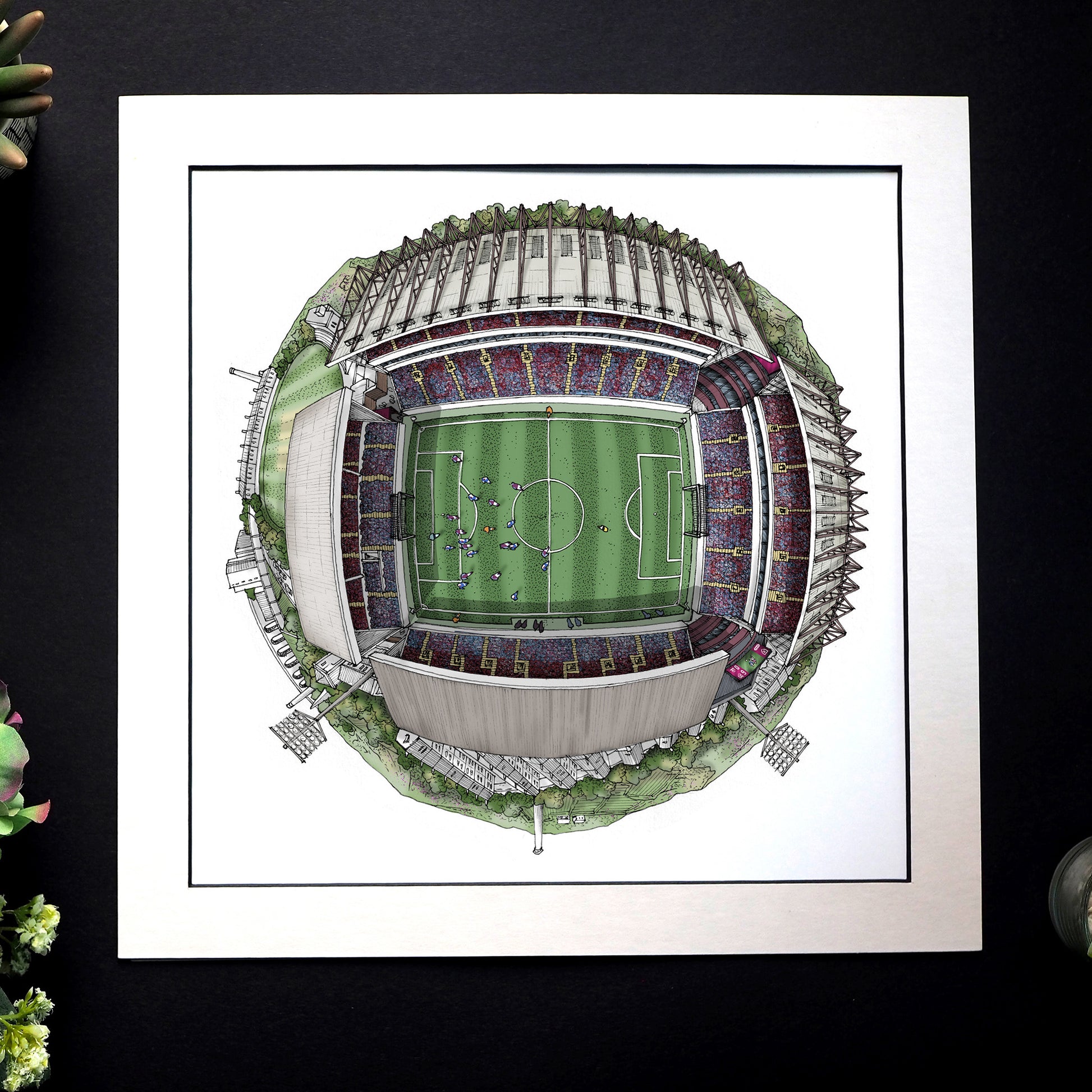 This visually stunning print offers an unusual perspective of Turf Moor and the Burnley cityscape.